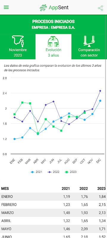 AppSent अपनी बीमित कंपनियों के लिए Mutua Fraternidad-Muprespa द्वारा बनाया गया एक एप्लिकेशन है, जो एक संपूर्ण डैशबोर्ड प्रदान करता है जिसके साथ पारस्परिक कंपनियां विभिन्न संकेतकों के माध्यम से अपनी अनुपस्थिति की स्थिति जान सकती हैं जो ग्राफ़ के रूप में प्रदर्शित होते हैं। एप्लिकेशन में क्षेत्रीय क्षेत्र द्वारा खुली और शुरू की गई प्रक्रियाओं के संकेतक, हाल के वर्षों का इतिहास और क्षेत्र के साथ तुलना शामिल है। आप म्यूचुअल फंड द्वारा किए गए कार्यों के संकेतक, लिंग और उम्र के आधार पर अनुपस्थिति के साथ-साथ विकृति विज्ञान के प्रकार के आधार पर अनुपस्थिति के विकास के बारे में भी जानकारी ले सकते हैं। इसके अलावा, इसमें आर्थिक और श्रम जानकारी पर एक ब्लॉक और सामाजिक सुरक्षा संकेतकों की एक श्रृंखला शामिल है।