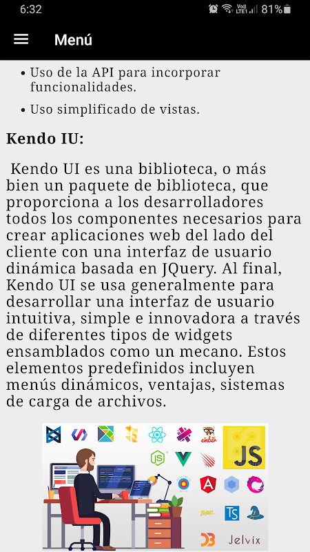 ऐप "शुरुआत से जावास्क्रिप्ट सीखें" आपके लिए पूरी तरह से स्पेनिश में एक कोर्स लाता है जो आपको चरणों और सिद्धांतों की एक श्रृंखला का पालन करते हुए जावास्क्रिप्ट में प्रोग्राम करने के लिए तैयार करता है जो आपको इस टूल को अधिक से अधिक समझने में मदद करेगा। विशेष रूप से, पाठ सभी प्रकार के छात्रों के लिए उपयुक्त हैं, यहां तक कि जिनके पास कोई पूर्व प्रोग्रामिंग ज्ञान या अनुभव नहीं है।