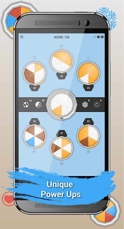 Arcagons consisting of sectors of the same color earn you more points and power ups!