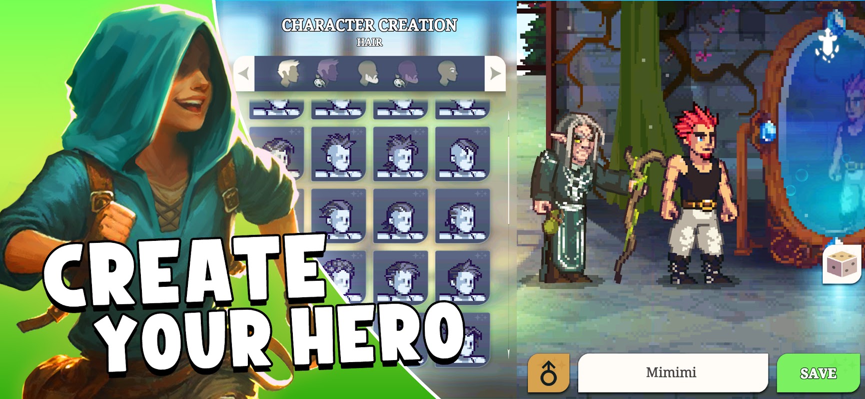 युद्ध, प्रतिभा, उन्नयन, अस्तित्व और अधिक के साथ महाकाव्य पिक्सेल आरपीजी साहसिक!