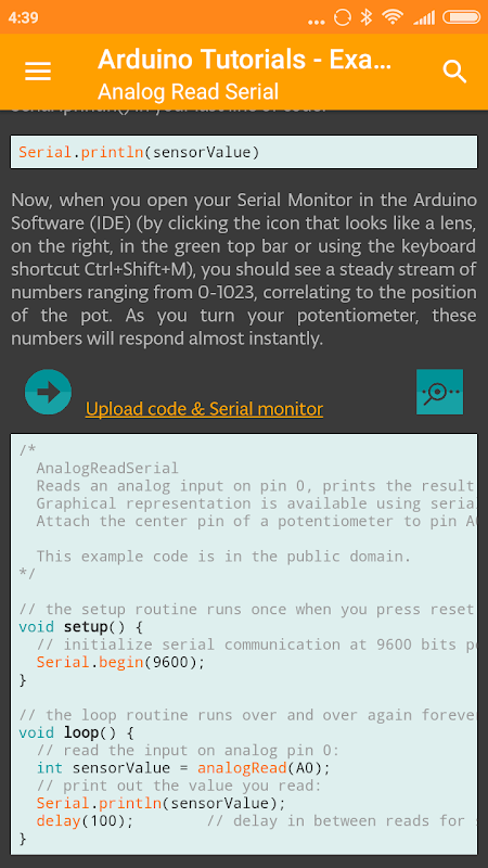 Arduino ट्यूटोरियल - उदाहरण 64 उदाहरण के साथ एक Arduino ट्यूटोरियल है। इस ऐप्लिकेशन विज्ञापनों और संभावित ऐप्लिकेशन के अंतर्गत खरीदी है, तो आपको https://www.arduino.cc/en/Tutorial/BuiltInExamples पर मुक्त करने के लिए ऑनलाइन सामग्री का उपयोग कर सकते हैं।