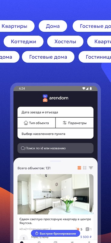 ऐप में आवास की सुविधाजनक खोज का उपयोग करें! प्रतिदिन होटल बुक करना और एक अपार्टमेंट किराए पर लेना - अरेन्डोम इसे आसानी से संभाल सकता है।