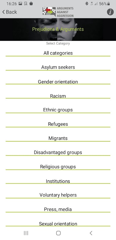 The AAA Mobile Application is a fully functional training environment that provides adults in public positions (e.g. civil servants, teachers, youth workers, persons in cultural institutions, media people) and citizens with training tools (guide, prejudices and arguments, activities, initiatives) that help them to cope with hate speech and aggression and handle respective situations. The general objective is to equip citizens with communication and argumentation skills that they can use in social media sites or real-life interactions whenever they are confronted with aggressive, racist or xenophobic messages, inequalities and gender violence.