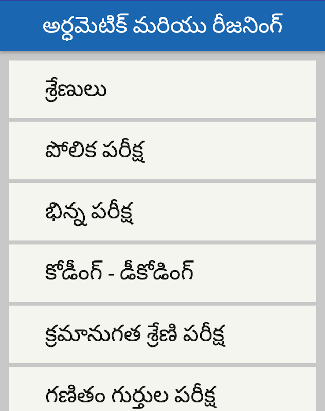 इस ऐप में अंकगणित और तर्क के सभी विषय शामिल हैं। आप मुफ्त परीक्षा का भी प्रयास कर सकते हैं।