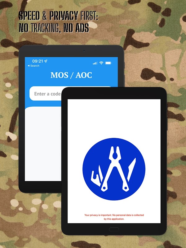 एक त्वरित, बकवास, आर्मी एमओएस और एओसी लुकअप ऐप। कोई ट्रैकिंग नहीं, कोई विज्ञापन नहीं, कोई फुलाना नहीं