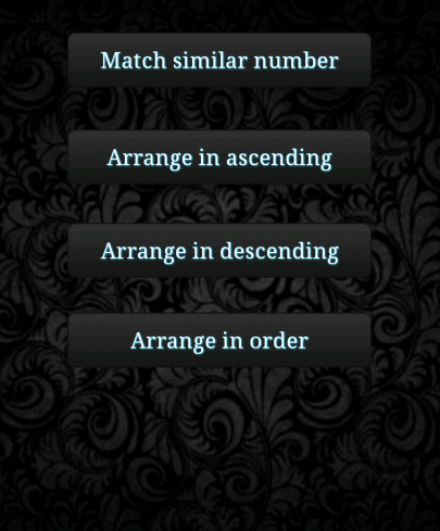 यह ऐप बच्चों के लिए आरोही और अवरोही क्रम सीखने के लिए बहुत उपयोगी है। उपयोगकर्ता को बेतरतीब ढंग से उत्पन्न संख्या मिल जाएगी और बच्चों को गुब्बारा क्लिक करके इसे आरोही और अवरोही क्रम में व्यवस्थित करना होगा। यह पूरी तरह से बच्चों के अनुकूल ऐप है। यह ऐप किसी भी समय मोबाइल पर सीखने और अभ्यास करने के लिए जूनियर स्तर के अंतर्राष्ट्रीय पाठ्यक्रम को कवर कर रहा है। इस ऐप में अन्य सेक्शन के साथ-साथ समान संख्या खोजें और नंबर के क्रम को व्यवस्थित करें।