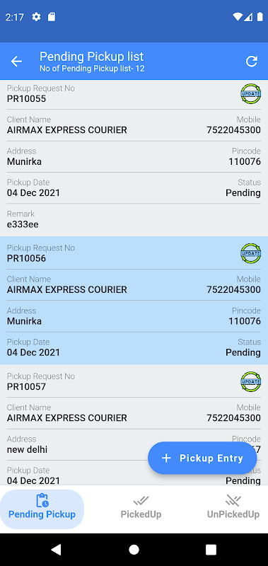 इस एप्लिकेशन का उपयोग ग्राहकों को आइटम भेजने के लिए किया जाता है।