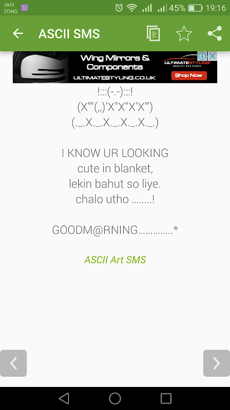 इस एप्लिकेशन को ASCII आर्ट एसएमएस संग्रह होता