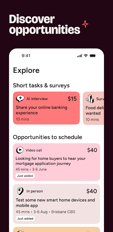 दुनिया भर में नौकरियों के साथ, आप केवल अपनी राय देकर बढ़िया पैसा प्राप्त कर सकते हैं। सत्र विविध हैं - कभी-कभी आप किसी वेबसाइट का परीक्षण कर रहे होंगे, कभी-कभी आप किसी नए उत्पाद पर प्रतिक्रिया दे रहे होंगे। अधिकांश ऑनलाइन हैं इसलिए आप उन्हें अपने घर के आराम से या काम पर अपने दोपहर के भोजन के ब्रेक पर भी पूरा कर सकते हैं। जो आपको सबसे अच्छा लगे उसके लिए आवेदन करें!