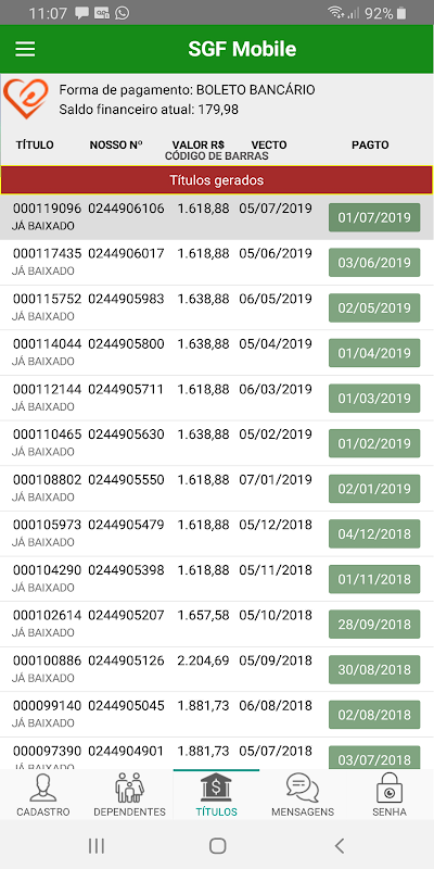 Dados cadastrais, dependentes, títulos (inclusive 2ª via), mensagens recebidas, atualização de acessos, planos de saúde (contratados, disponíveis e simulações de custos), convênios e localização e uma série de outras informações.