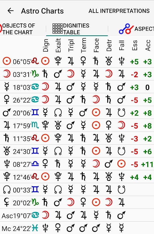 ऐप में राशियों, भावों और वक्री अवस्था में जन्म ग्रहों, जन्म भावों में गोचर ग्रहों, जन्म दृष्टि, गोचर से जन्म दृष्टि, सिनस्ट्री दृष्टि, जन्म लग्न और राशियों में भावों की व्याख्याएँ उपलब्ध हैं।