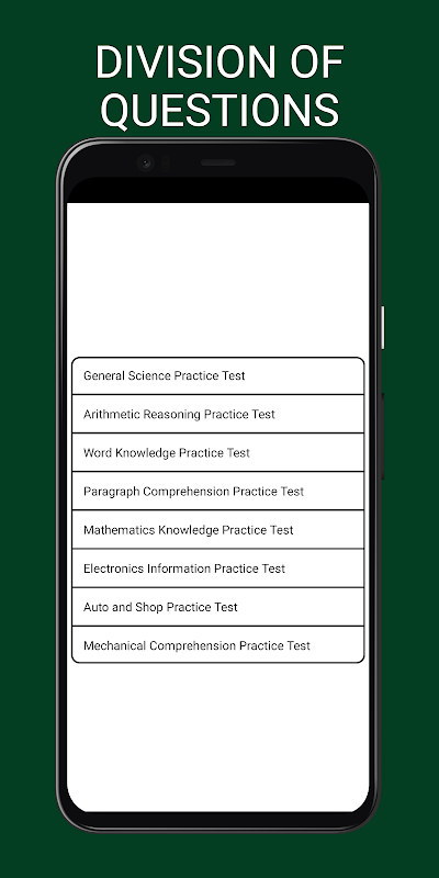 यह परीक्षण सिम्युलेटर आपको एएसवीएबी 2024 परीक्षा की तैयारी करने और सफलतापूर्वक उत्तीर्ण करने में मदद करेगा!