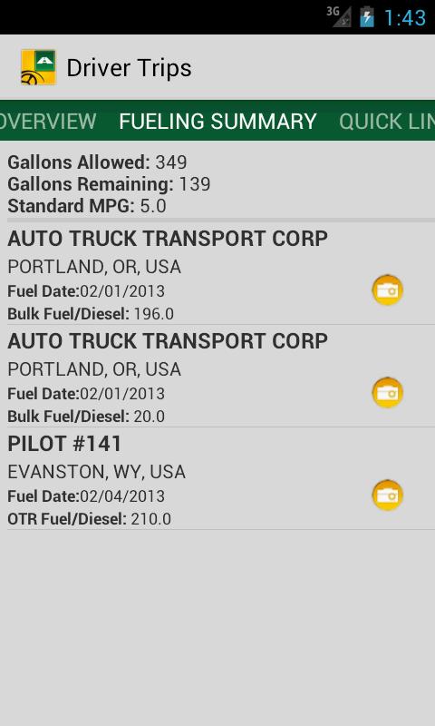 ड्राइवरों के लिए एक आंतरिक उपकरण उनकी यात्राओं पर उपयोग करने के लिए.
