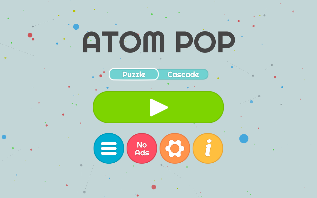 In cascade mode, combined atoms with matching electrons pop and the remaining unmatched electrons shoot off, possibly combining with other atoms causing a cascade. Pop all the atoms using the least number of swipes to get the most stars!