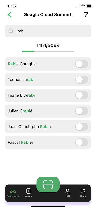 अटेंडी एक बहुमुखी एप्लिकेशन है जिसे आपके कार्यक्रमों के संगठन और प्रबंधन को सरल बनाने के लिए डिज़ाइन किया गया है, चाहे सम्मेलन, उत्सव, शादी या व्यावसायिक बैठकें हों। सहभागी अतिथि सूचियों को प्रबंधित करने, पहुंच को नियंत्रित करने, वैयक्तिकृत निमंत्रण भेजने और वास्तविक समय में उपस्थिति पर नज़र रखने के लिए मजबूत सुविधाएँ प्रदान करता है। इसका सहज ज्ञान युक्त इंटरफ़ेस आयोजकों को अपने मेहमानों के लिए एक सहज और पेशेवर अनुभव प्रदान करते हुए आवश्यक चीज़ों पर ध्यान केंद्रित करने की अनुमति देता है। सहभागी आपके आयोजनों की सफलता की गारंटी देने के लिए आदर्श उपकरण है, चाहे वे कुछ भी हों।