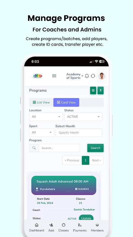 • कोचिंग कार्यक्रमों और कोर्ट बुकिंग की निगरानी करें।