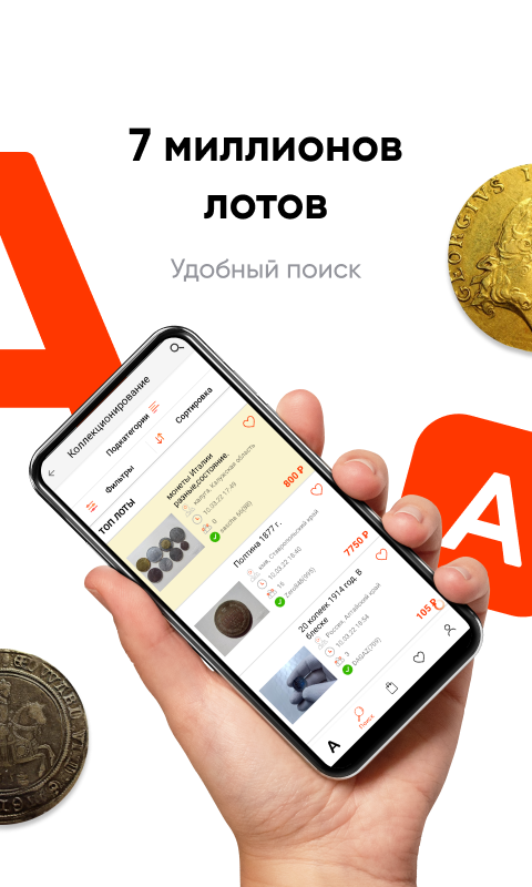 मुद्राशास्त्र और प्राचीन वस्तुओं की ऑनलाइन नीलामी की दुनिया में Auction.ru आपका विश्वसनीय भागीदार है। संग्रहण समुदाय में शामिल हों और अपने मोबाइल डिवाइस से ईबे जैसे दुर्लभ सिक्कों और प्राचीन वस्तुओं का व्यापार करें।