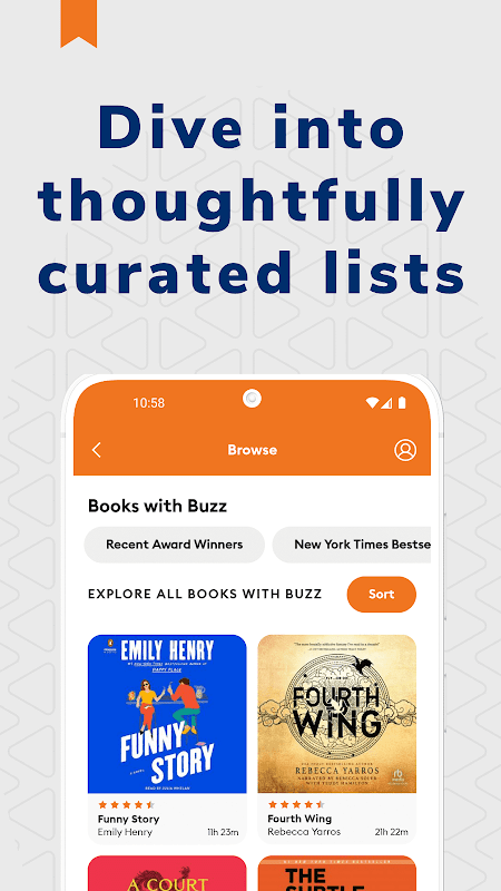 हमारे विशाल पुस्तकालय तक पहुँचना इतना आसान कभी नहीं रहा। बस कुछ ही टैप से, आप हमारे व्यापक संग्रह का पता लगा सकते हैं, वैयक्तिकृत अनुशंसाओं का आनंद ले सकते हैं, और कुछ ही समय में अपने पसंदीदा शीर्षक सुनना शुरू कर सकते हैं।