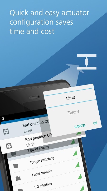 AUMA सहायक ऐप लचीला और तेज़ एक्चुएटर सेटिंग और कॉन्फ़िगरेशन की अनुमति देता है। यह कमीशन और रखरखाव के लिए समय और पैसा दोनों बचाता है। ऐप व्यापक कॉन्फ़िगरेशन और डायग्नोस्टिक विकल्प प्रदान करता है, आसान और सीधा। एक्चुएटर कनेक्शन ब्लूटूथ इंटरफेस के माध्यम से किया जाता है।