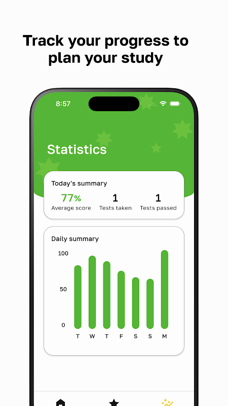 हमारा ऐप अंग्रेजी दक्षता के सभी स्तरों के लिए उपयुक्त है और ऑस्ट्रेलियाई नागरिकता परीक्षा की तैयारी करने वाले किसी भी व्यक्ति के लिए डिज़ाइन किया गया है, चाहे आप एक स्थायी निवासी हों जो नागरिक बनना चाहते हों या एक प्रवासी श्रमिक हों जो ऑस्ट्रेलिया को अपना घर बनाना चाहते हों।