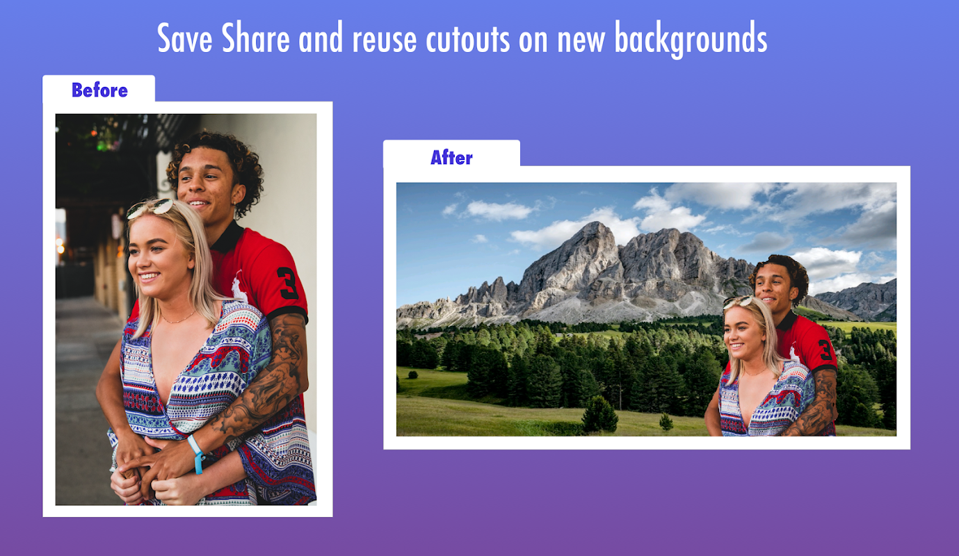 स्वचालित पृष्ठभूमि इरेज़र - पृष्ठभूमि संपादक स्वचालित रूप से किसी भी तस्वीर से पृष्ठभूमि को हटा देता है। गैलरी से छवि का चयन करें, यदि आवश्यक हो तो फसल लें, प्रक्रिया टैप करें और आपकी पारदर्शी छवि तैयार है। और यह 100% मुफ्त है