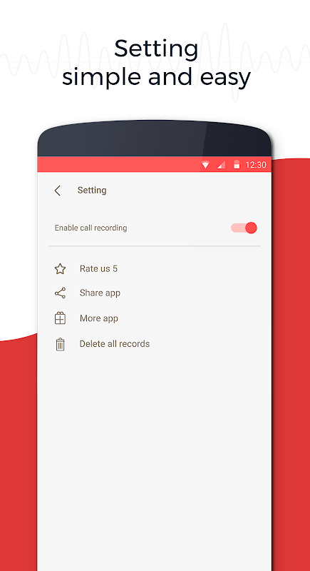 📣 मुफ्त कॉल रिकॉर्डिंग ऐप सभी आने वाली और आउटगोइंग कॉल की 2 तरीके रिकॉर्डिंग, जिसे आप आसानी से अपने उद्देश्य और प्राथमिकताओं के अनुसार सेट कर सकते हैं। आप उन रिकॉर्डिंग को दोस्तों, रिश्तेदारों या किसी और के साथ भी साझा कर सकते हैं। यह निश्चित रूप से आपके लिए सबसे अच्छा 2-तरफा कॉल रिकॉर्डिंग एप्लिकेशन होगा, और यह उन सुविधाओं के साथ भी एक शानदार अनुभव होगा जो आपके लिए सबसे आवश्यक हैं।