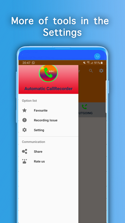 ऑटोमैटिक कॉल रिकॉर्डर-फ्री कॉल रिकॉर्ड सुविधाओं का एक अनूठा सेट प्रदान करता है जो आपको किसी भी कॉल को स्वचालित रूप से रिकॉर्ड करने की अनुमति देगा।
