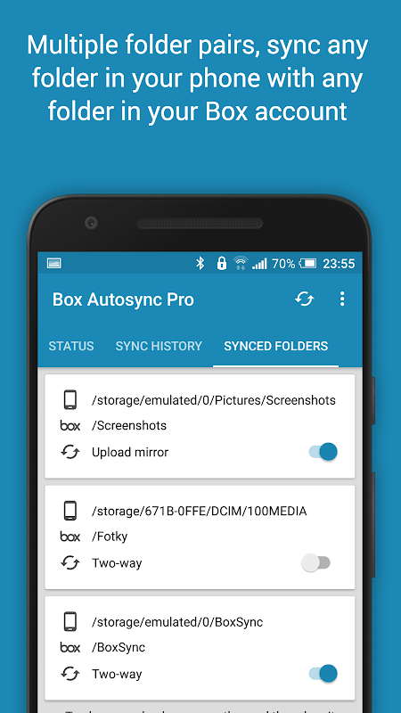 यह कैसे बॉक्स कंप्यूटर पर काम करता है, लेकिन एंड्रॉइड पर नहीं। दो-तरफ़ा स्वचालित सिंक्रनाइज़ेशन आधिकारिक ऐप का एक आवश्यक कार्य होना चाहिए। जो भी कारण के लिए, यह मामला नहीं है। गैप को भरने के लिए BoxSync यहाँ है।