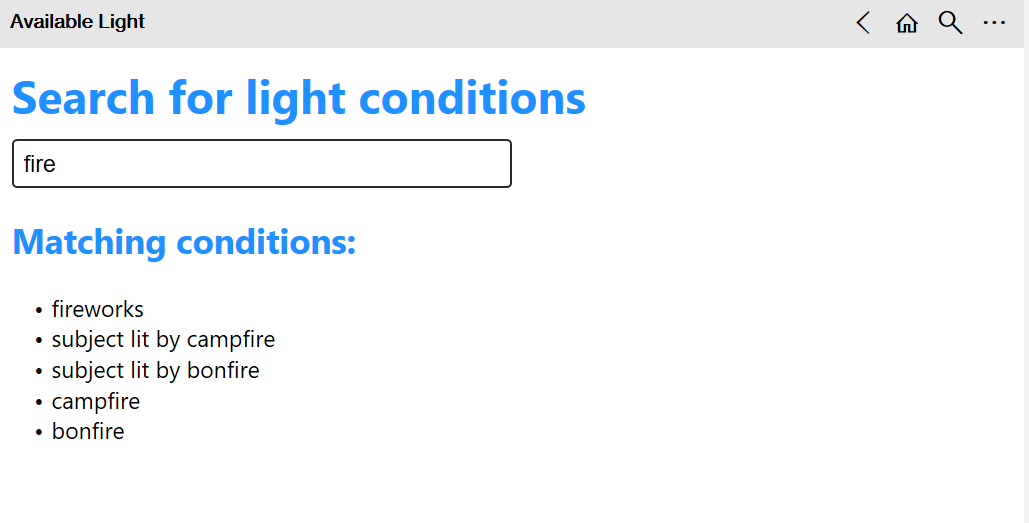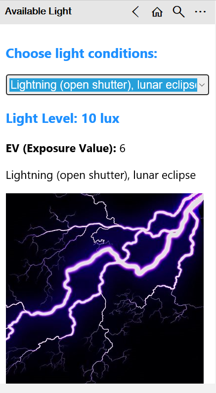 आधुनिक कैमरों में महान अंतर्निहित प्रकाश मीटर होते हैं, लेकिन कभी-कभी उपलब्ध प्रकाश का उपयोग करके फोटो खींचना (यानी बिना फ्लैश या अन्य फोटोग्राफिक प्रकाश व्यवस्था) एक चुनौती हो सकती है, खासकर कम प्रकाश स्तर या लंबे उच्च तीव्रता वाले प्रकाश में लंबे समय तक जोखिम के साथ। सौभाग्य से चरम स्थितियों में आप आमतौर पर इस तरह के एक एक्सपोजर गाइड का उपयोग कर सकते हैं। बस अपनी फिल्म गति सेटिंग दर्ज करें, सूची से प्रकाश की स्थिति चुनें और फिर शटर गति और एपर्चर संयोजनों की एक तालिका देखें। यह तालिका आपको अंतर्निहित लाइट मीटर की सीमा के बाहर की स्थितियों में मैन्युअल नियंत्रण वाले कैमरे का उपयोग करने की अनुमति देती है। ऐप लक्स में एक्सपोज़र वैल्यू और लाइट लेवल की गणना भी करेगा। कठिन परिस्थितियों में अच्छी तस्वीरें लेने में मदद करने के लिए यह एक सरल उपकरण है।