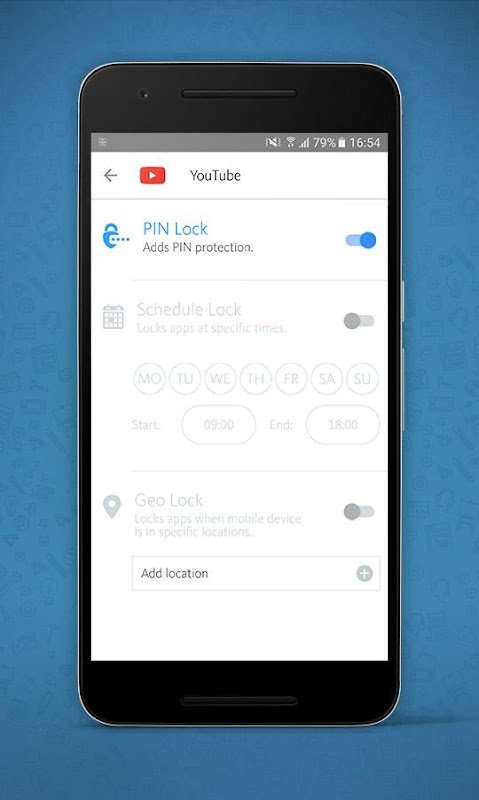 Automatically lock apps at a given time, for instance, on workdays between 9AM to 6PM, or when it’s bedtime for your kids. Ideal for keeping your kids off Facebook Messenger while in class or stopping Pinterest from distracting you while at work.