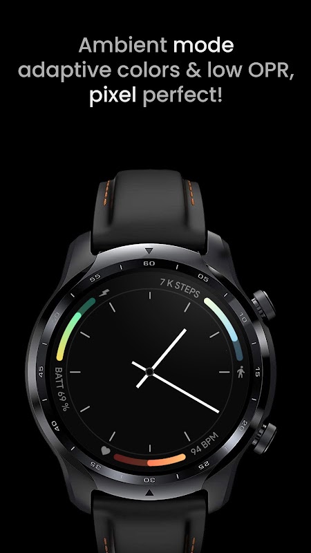 • कम ओपीआर और अनुकूली रंगों और घड़ी की सुइयों के साथ अनुकूलन योग्य परिवेश मोड
