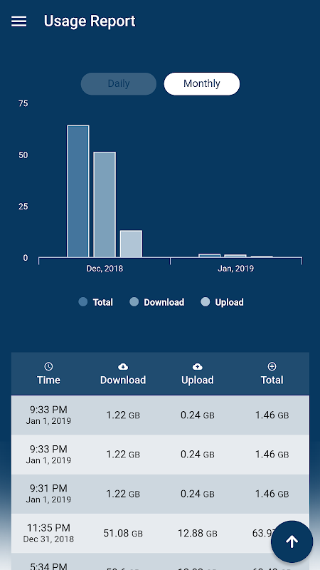 • वर्तमान बिल चक्र का मासिक कुल/अपलोड/डाउनलोड डेटा उपयोग दिखाता है।