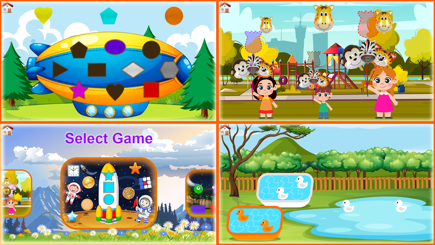 आकार, रंग और आकार 2 - 5 साल के बच्चों के लिए डिज़ाइन किए गए थे।