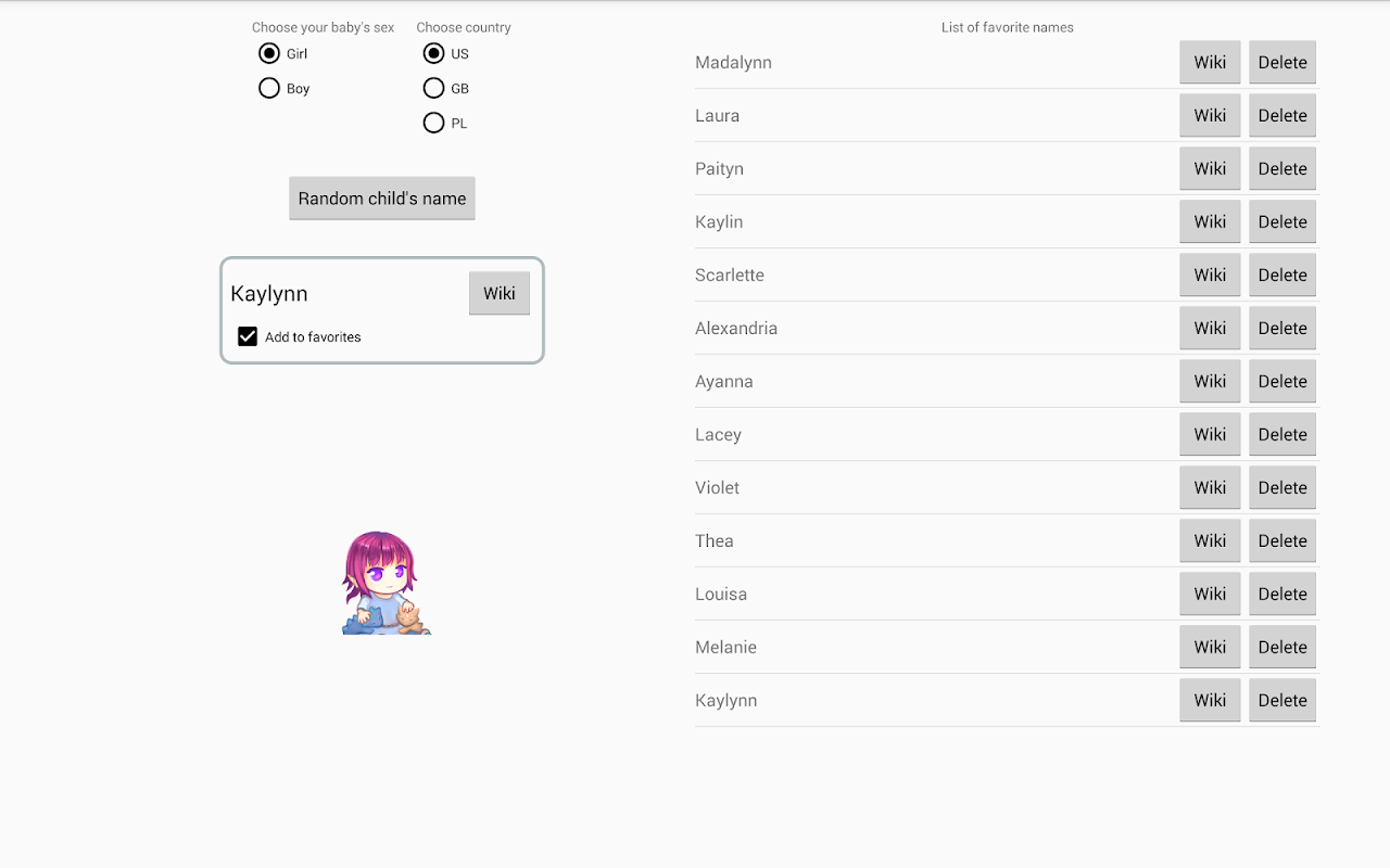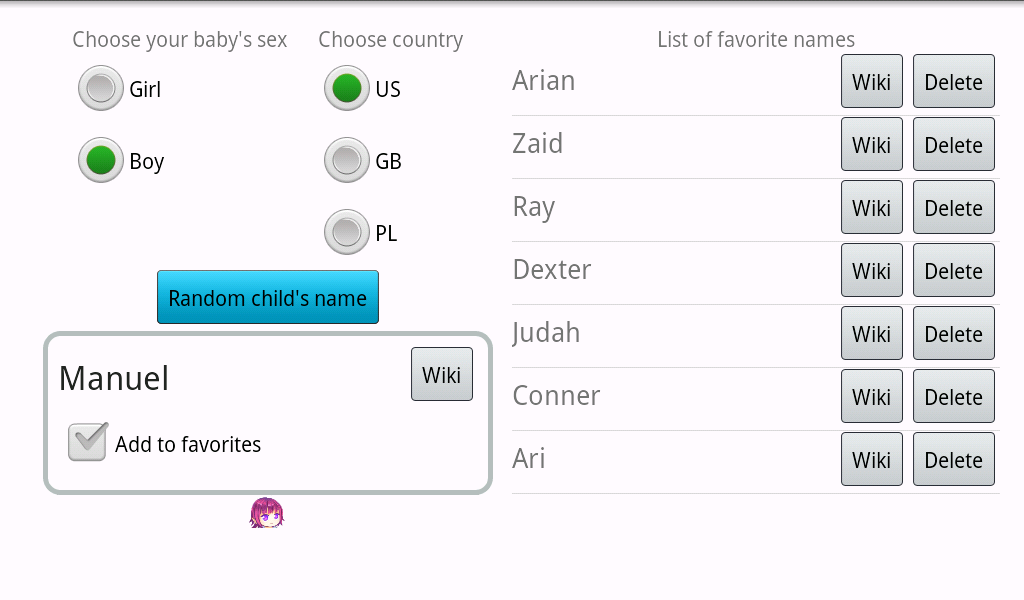 आप गर्भवती हैं और अपने बच्चे के लिए नाम के बारे में सोच? यह आवेदन अपने बच्चे के लिए यादृच्छिक नाम करने के लिए अनुमति देता है? तुम भी सूची पर पसंदीदा नामों स्टोर कर सकते हैं।