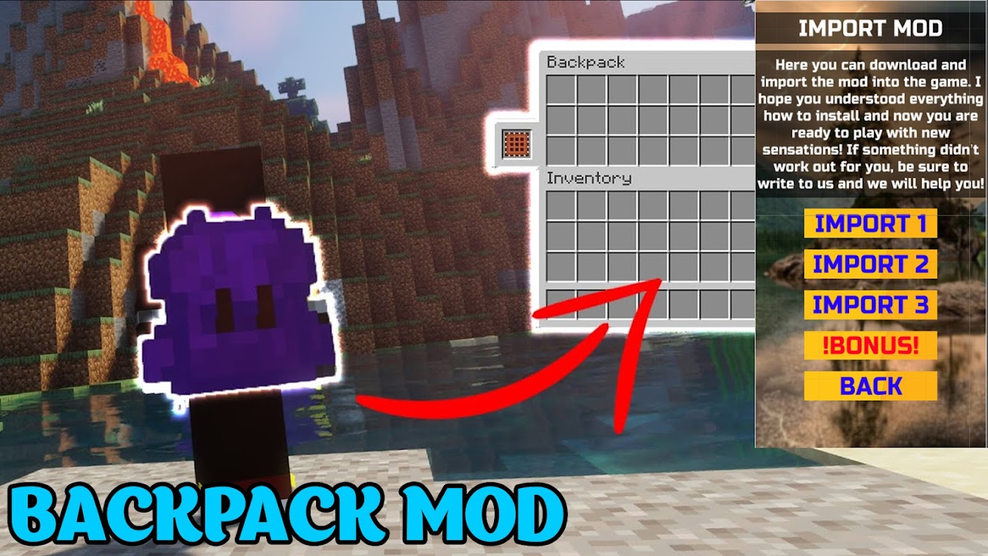 💪 Backpack for Minecraft PE This is a mod installation for MCPE game.💪