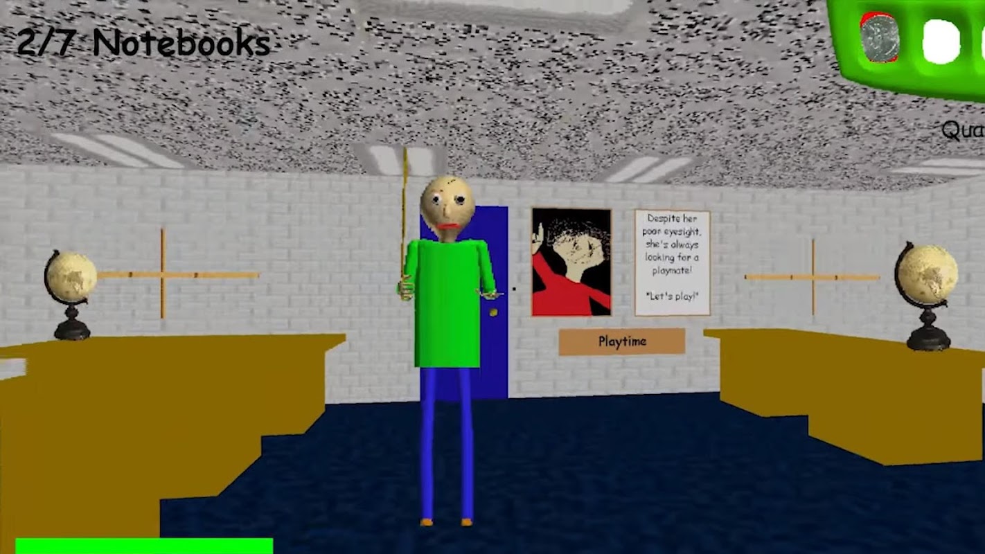 In Baldi's Basics in Education and Learning (Baldi's Basics) you play as student at Baldi's Schoolhouse, whose goal is to fill out seven notebooks scattered about the campus.