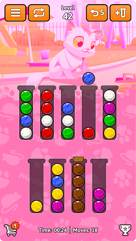 प्रत्येक लेवल बॉल सॉर्टिंग में एक नई चुनौती पेश करता है, लेकिन अधिक रोमांच जोड़ने के लिए, आपको कुछ स्तरों को पूरा करने के बाद अतिरिक्त बॉल सेट प्राप्त होंगे। इसके अतिरिक्त, प्रत्येक लेवल को पूरा करने पर, आपको सिक्के मिलेंगे जिन्हें स्टोर में बॉल सेट या बैकग्राउंड जैसी अधिक वस्तुओं के लिए भुनाया जा सकता है। लेवल जितना कठिन होगा, आप उतने ही अधिक सिक्के कमाएँगे!