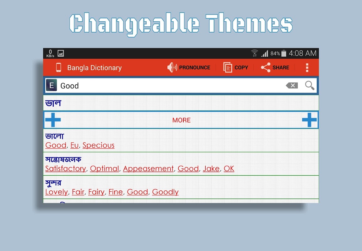 * कॉपी और आसानी से अनुवादित शब्दों को साझा करें।