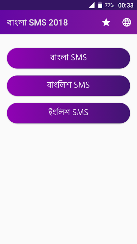 বাংলা এসএমএস সেরা সব এসএমএস এর কালেকশন রয়েছে, bangla sms অ্যাপ এ আপনি পাবেন বর্তমান সময়ের সব মজার মজার এস এম এস সমূহ। কোন প্রিয়জন কে SMS পাঠাতে বাংলা এসএমএস থেকে এসএমএস পাঠাতে পারেন। আপনার অনেক মুল্যবান সময় বাচাতে পারবেন।