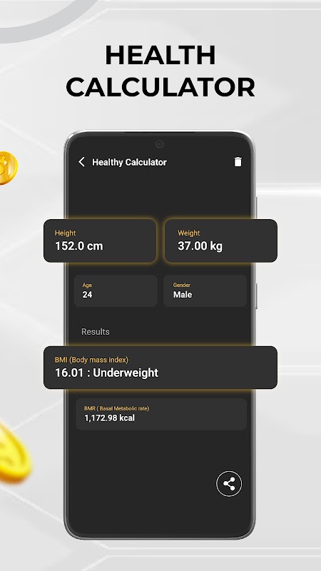 ✔️ बीएमआई, स्वास्थ्य कैलकुलेटर की गणना करें
