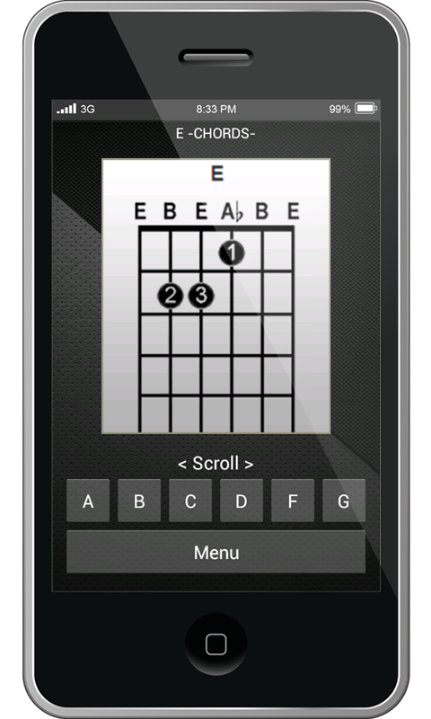 chords by clicking on the chord icon. There's also simple guitar tuner