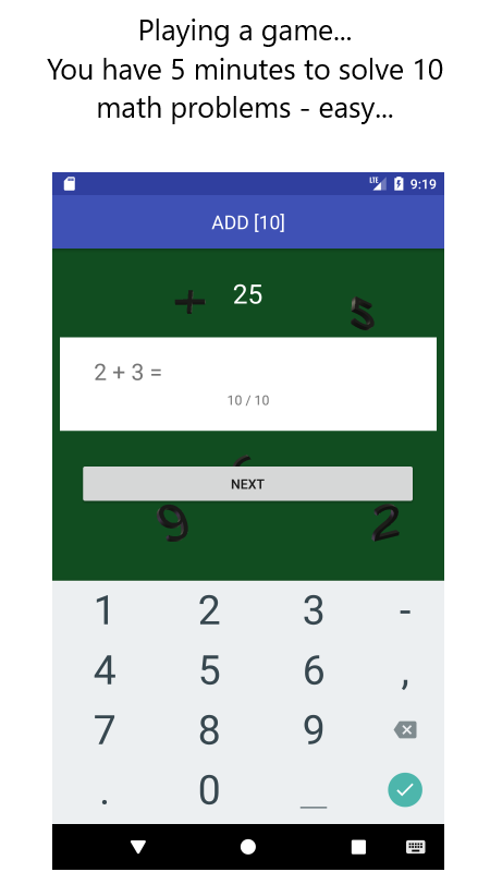 बेसिक गणित आपको अपने बुनियादी गणित कौशल का अभ्यास करने की अनुमति देता है. आप जोड़, घटाव, गुणा, या विभाजन या उसके कुछ संयोजन से चयन कर सकते हैं, संख्याओं की एक चयन योग्य सीमा (0..10, सभी तरह से 0..1000 तक) के साथ. यह केवल पूर्ण संख्याओं (पूर्णांक) पर काम करता है.