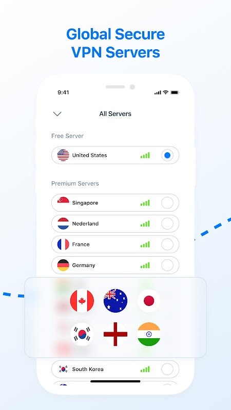 - दुनिया भर में स्थान वीपीएन सर्वर।