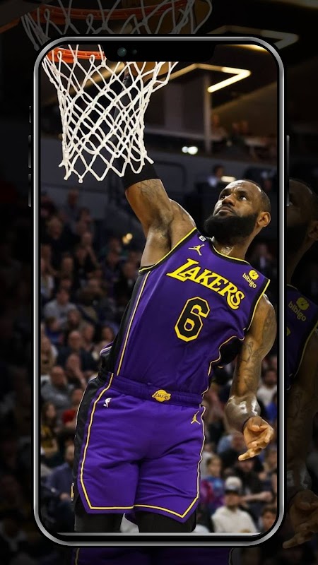 ऐप में लॉस एंजिल्स लेकर्स के बास्केटबॉल खिलाड़ी लेब्रोन जेम्स का वॉलपेपर है।