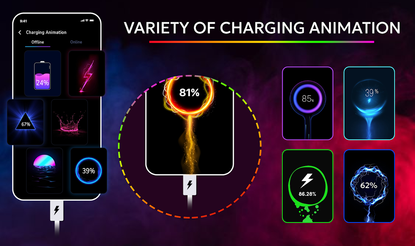 यह सबसे अच्छा बैटरी चार्जिंग एनीमेशन टूल है, सैकड़ों भव्य और समकालीन संभावनाओं के साथ, यह मोबाइल चार्जिंग एनीमेशन थीम है।