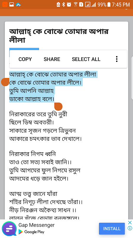 জনপ্রিয় সব বাউল গানের (Baul Song) লিরিক্স নিয়ে বানানো আমাদের এই অ্যাপ। যেখানে বাউল সম্রাট লালন শাহ (Lalon Song) জনপ্রিয় গানের লিরিক্স সহ বাংলার (Bangla Baul Song) ছড়িয়ে ছিটিয়ে থাকা অনেক গুনিমান বাউল শিল্পীদের গানের লিরিক্স সংরক্ষণ করা হয়েছে। এখানে যে সব বাউলের গান লিপিবন্ধ করা হয়েছে তা নিম্নরূপ