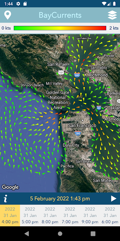 एस.एफ. में प्रायोगिक मॉडल पूर्वानुमान धाराओं को दिखाने वाला ऐप। खाड़ी।