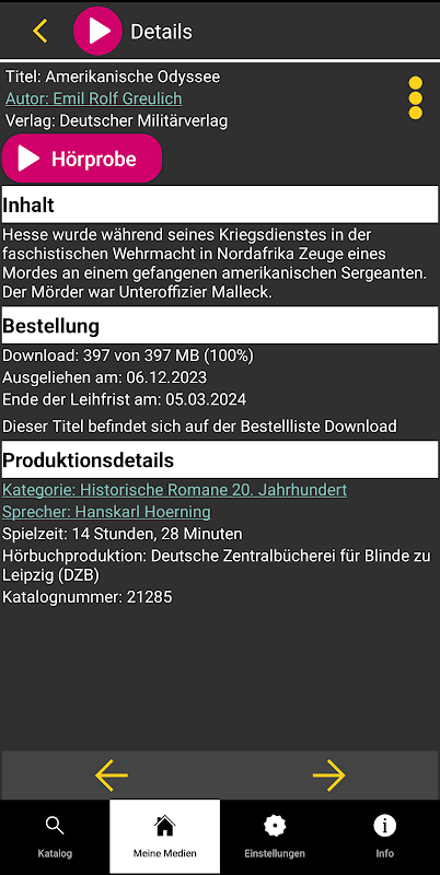 बवेरियन ऑडियो लाइब्रेरी से ऑडियो बुक ऐप के साथ, पंजीकृत उपयोगकर्ता हमारी ऑनलाइन कैटलॉग ब्राउज़ कर सकते हैं, सीडी पर ऑडियो किताबें ऑर्डर कर सकते हैं या ऐप का उपयोग करके सीधे डाउनलोड और सुन सकते हैं। हमारे कैटलॉग में 50,000 से अधिक शीर्षक शामिल हैं - हर किसी के लिए कुछ न कुछ है।