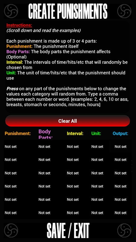 BDSM Master is the ultimate app for BDSM . You and a partner can enjoy the Random Punishment Generator's 30+ types of punishments. Create your own punishments or brush up on your knowledge by reading the BDSM Dictionary which contains over 100 words and definitions. Be sure to check back often, much more content and features to come in the near future. Tablet support should be next update.