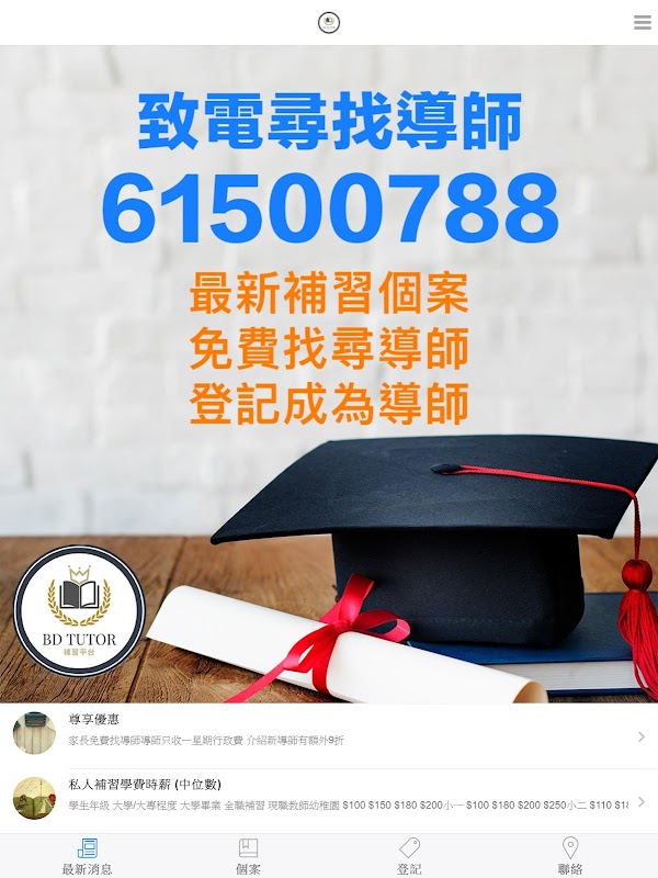 BDTutor 補習平台, 以配對系統提供私人補習導師的補習配對中介平台。 本會為家長作出專業的導師介紹,為中小學生提供來自港大、中大、科大等各大專院優質的上門補習導師。簡單登記,導師與家長共同找到對的選擇。為學生提供最合適的補習導師 。